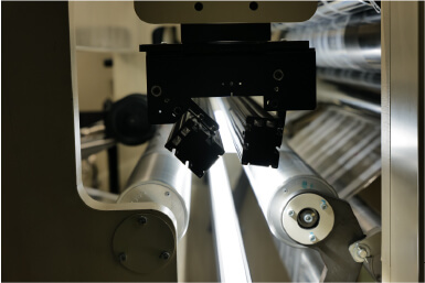 スリット加工とは、ロール状のフィルムの材料を任意の幅に切断し、再度ロール状に巻取る加工法です。
